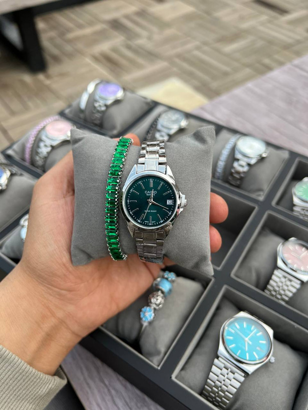 ساعت مردانه و زنانه جدید کاسیو با بند تمام استیل ورنگ ثابت، ضدآب شیشه تراش خرده وضد خش دارای تقویم روز شمار، باکیفیت عالی وقیمت مناسب همراه با جعبه وبالشتک شیک، هدیه چی چی کالا، ودر رنگ بندی متنوع و جذاب،