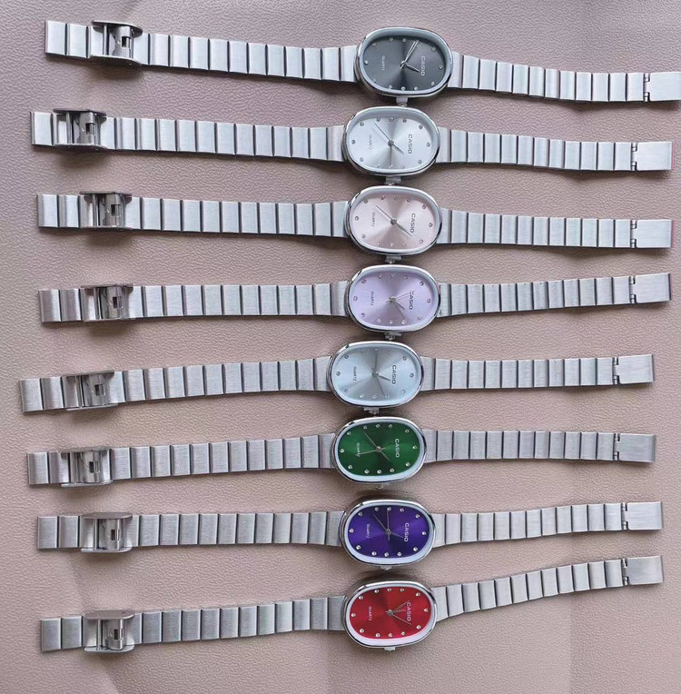 ساعت زنانه جدید صفحه بیضی کاسیو بارنگ ثابت ضدآب شیشه تراش خرده وضد خش بارنگ های جذاب و دلنشین،