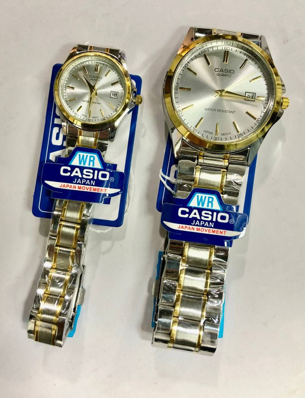 ساعت ست زنانه ومردانه جدید کاسیو بارنگ ثابت دارای تقویم روز شمار شیشه تراش خرده وضد خش باکیفیت بالا و قیمت مناسب همراه با جعبه وبالشتک شیک هدیه فروشگاه چیچیکالا،