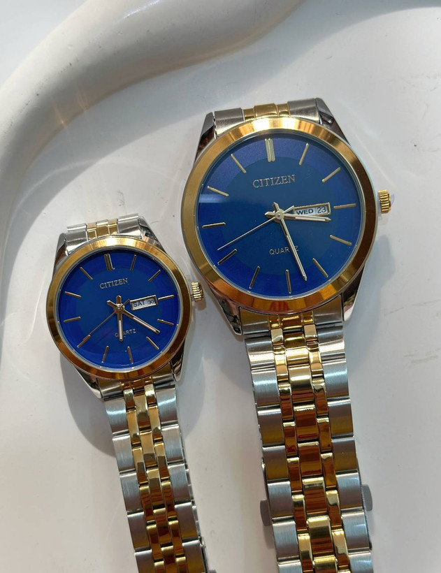 ساعت ست زنانه ومردانه جدید سیتیزن بارنگ ثابت دارای ۲تقویم کلاسیک بابند استیل شیشه تراش خرده وضد خش عمر باطری یک سال همراه باجعبه و بالشتک شیک هدیه فروشگاه چیچیکالا
